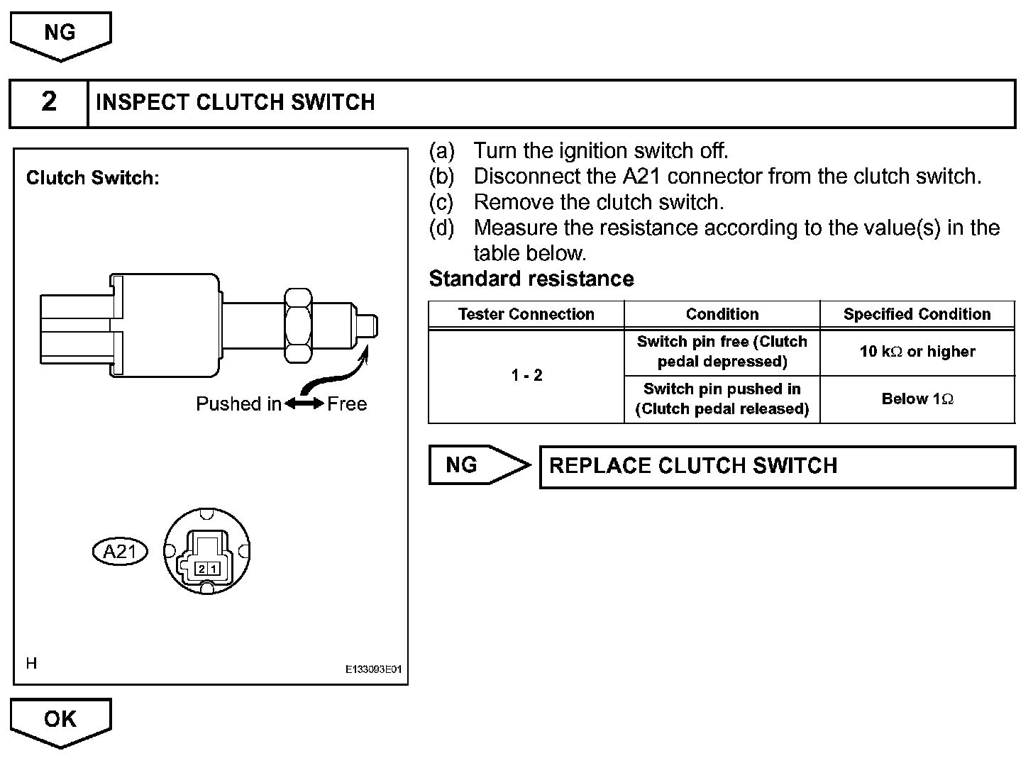 Clutch switch circuit inspection is necessary for M/T vehicles.