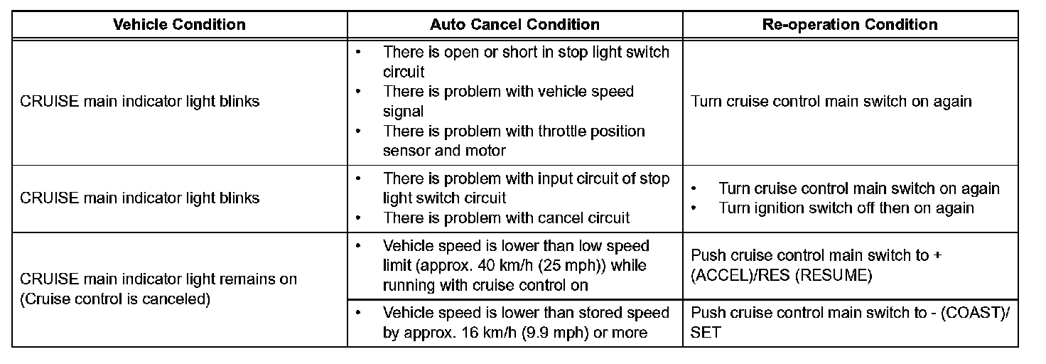 is in operation, the system clears the stored vehicle speed in the ECM and cancels the cruise control operation.