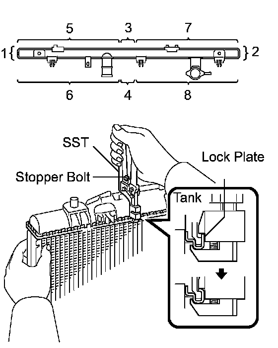 (a) Installation procedure of the radiator tank lower is the same as that of the radiator tank upper.