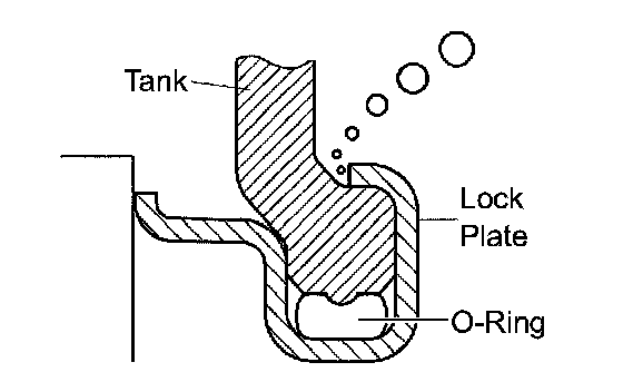 - Water leakage will result if the bottom of the lock plate groove is damaged or dented. Repair or replace the locking plate if necessary.