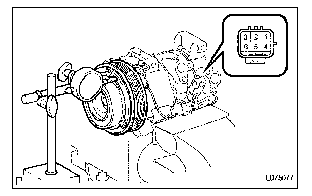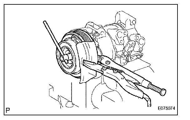 a. Place the compressor and magnetic clutch in a vise.