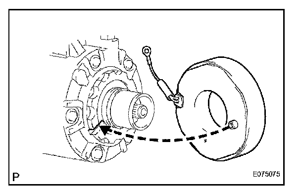 a. Install the magnetic clutch stator while aligning the protrusion on the stator with the notch on the air compressor assembly as shown in the illustration.