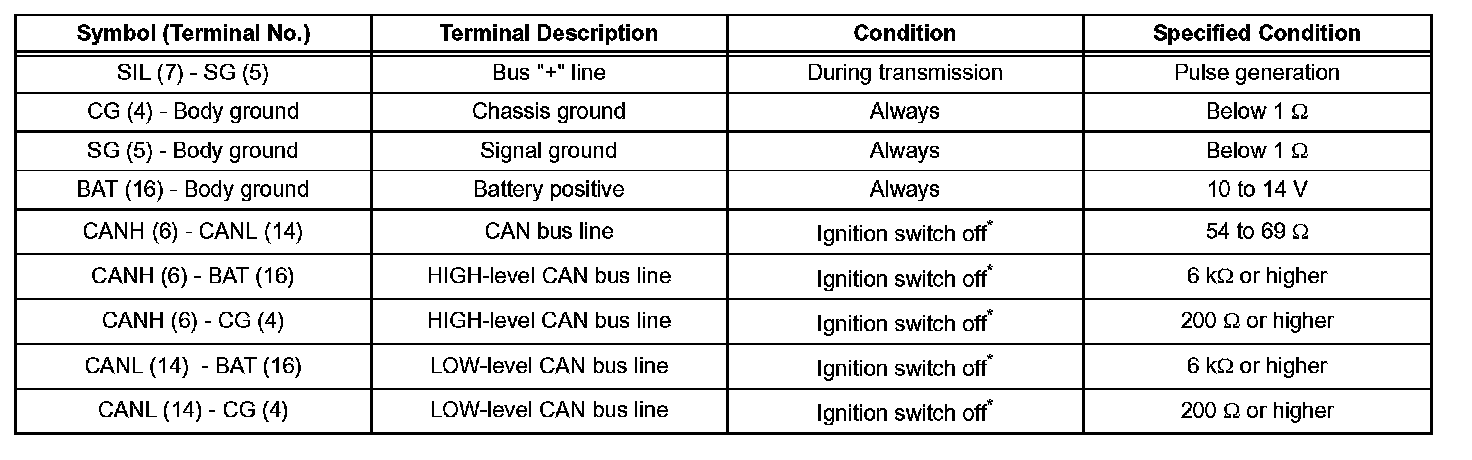 NOTE: * : Before measuring the resistance, leave the vehicle as is for at least 1 minute and do not operate the ignition switch, any other switches, or the doors.