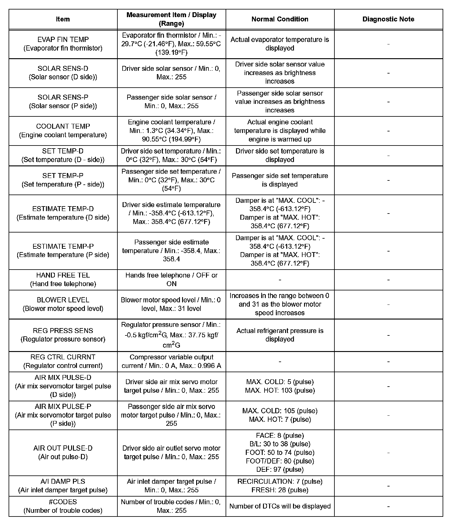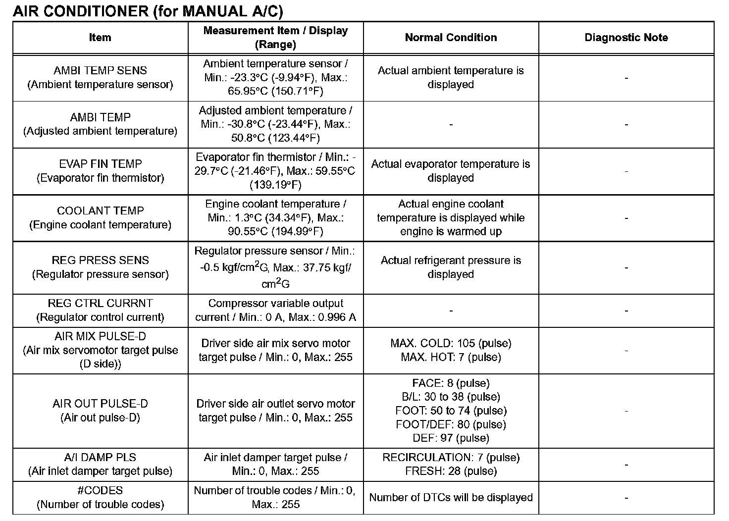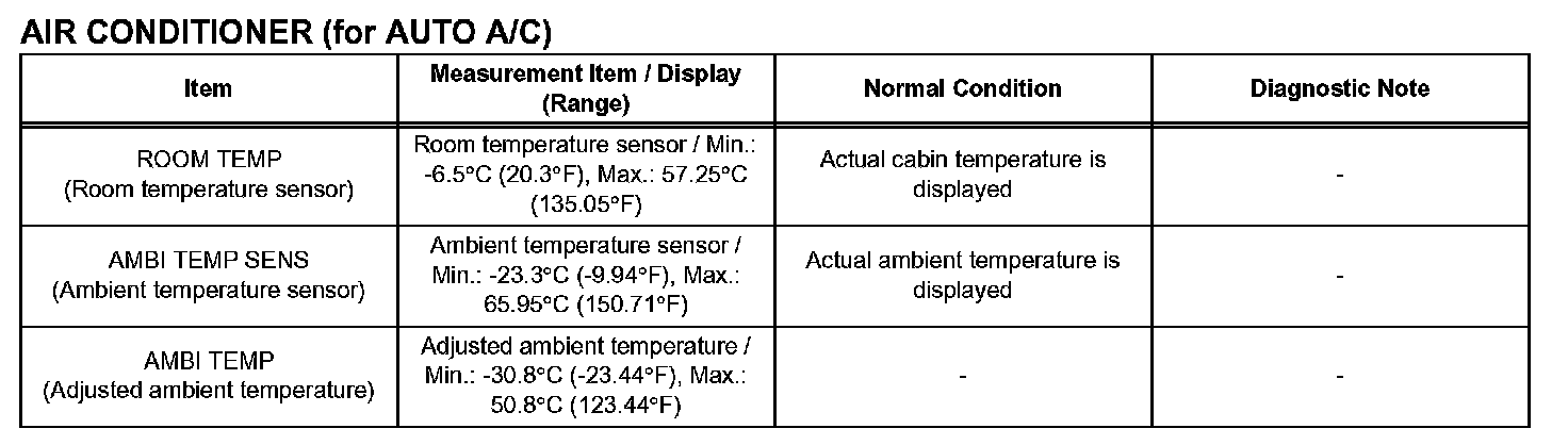 d. Enter the given menus: DIAGNOSIS / OBD/ MOBD /AIR CONDITIONER / DATA LIST.