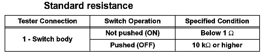If the result is not as specified, replace the rear door courtesy light switch assembly.