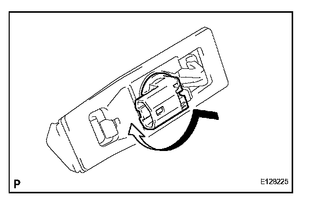 a. Turn the license plate light bulb and the license plate light socket in the direction indicated by the arrow and remove them as a unit.