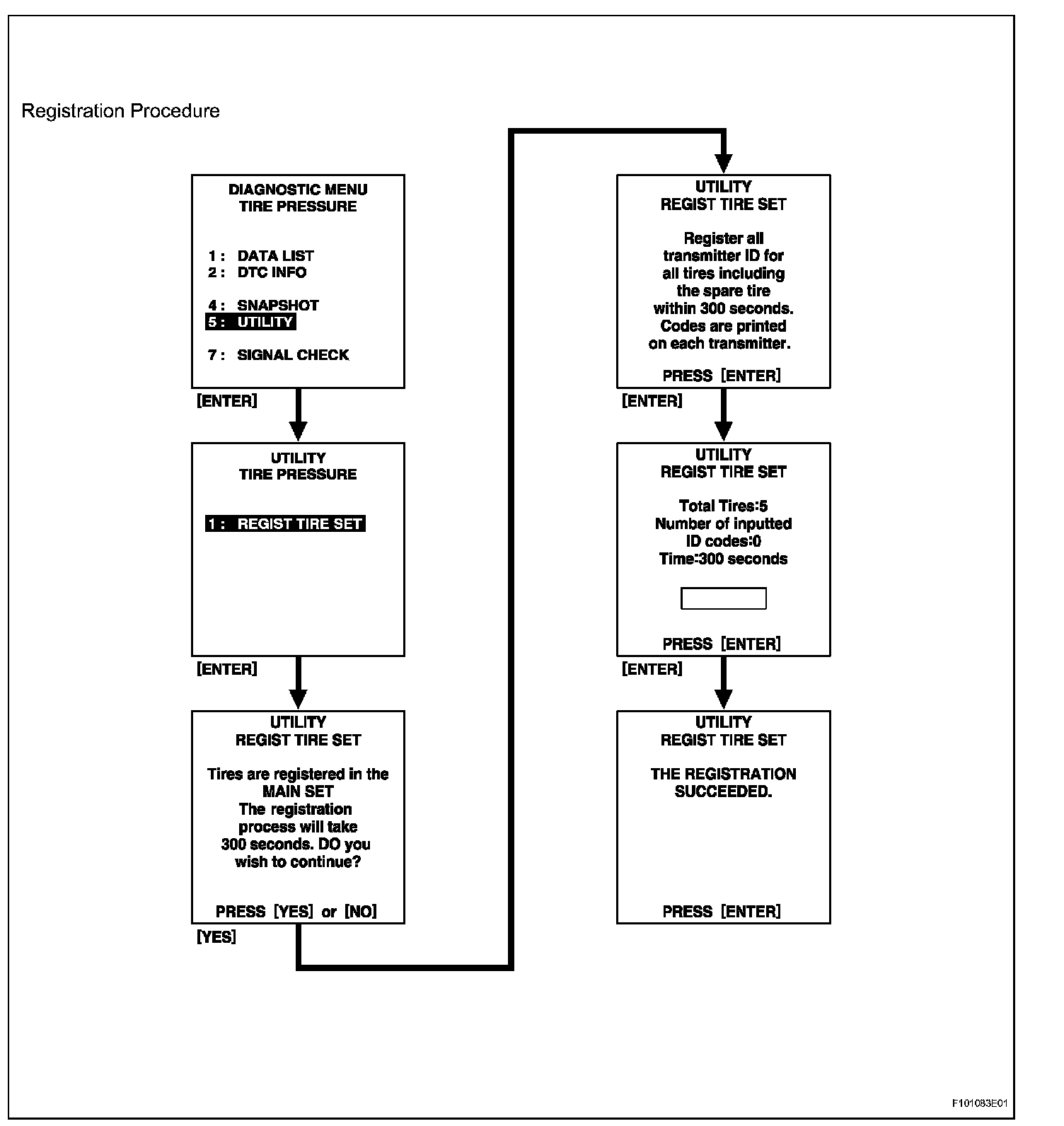 (c) Select the REGIST TIRE following the intelligent tester screen (UTILITY - REGIST TIRE) (Procedure "C").