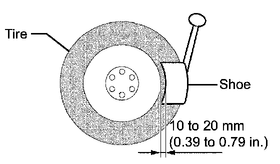 (c) After dropping the tire pressure warning valve and transmitter into the tire, disengage the bead using the shoe of the tire remover.