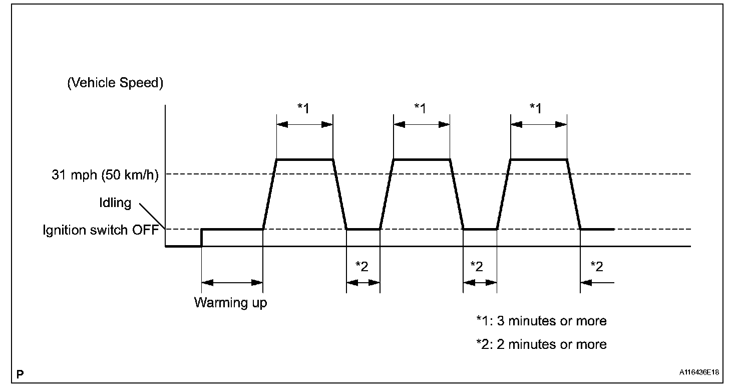 6. Drive the vehicle at 31 mph (50 km/h) or more for 3 minutes or more (*1).
