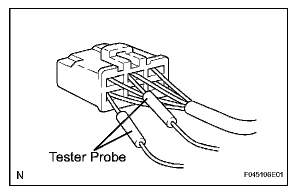 a. When checking resistance with a tester, insert the tester probes from the backside (harness side) of the connector.