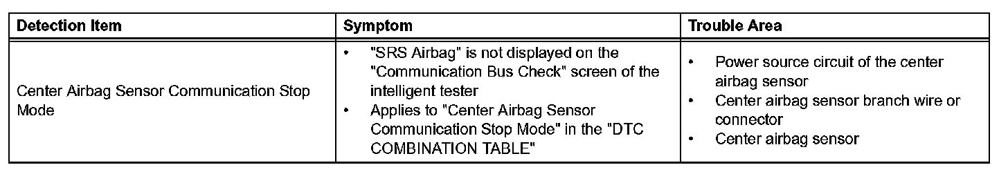 Center Airbag Sensor Communication Stop Mode