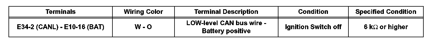 TERMINALS OF ECUNOTE: This section describes the standard CAN values for all CAN related components.