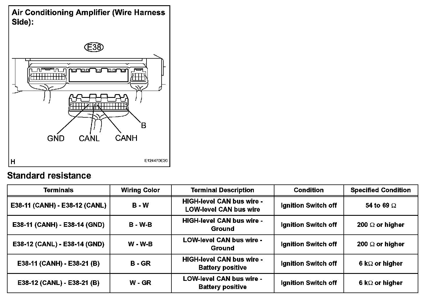 a. Check the harness side connector (E38) of the air conditioning amplifier.