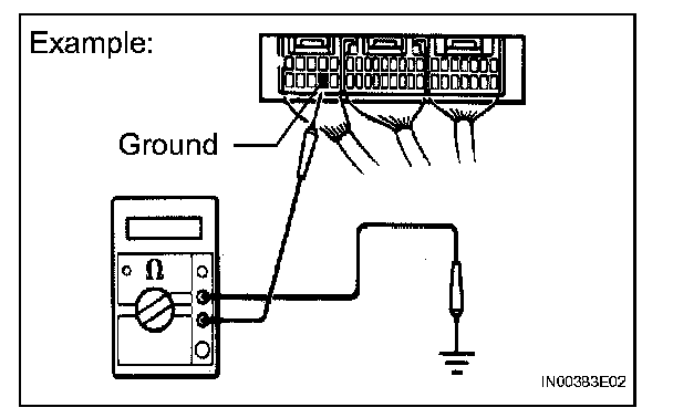 1. Measure the resistance between the ECU ground terminal and body ground.