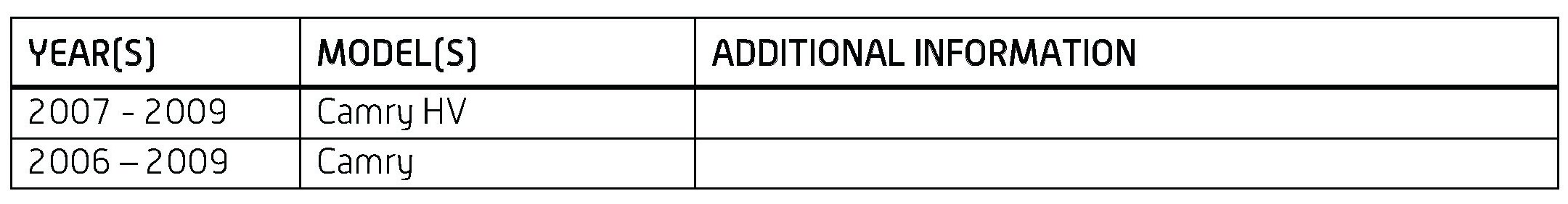 Some 2006 - 2009 model year Camry and 2007 - 2009 model year Camry HV vehicles may experience: