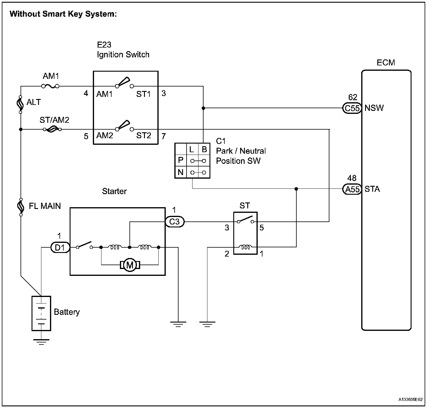 When the engine is cranking, the starter operation signal is sent to the ECM's STA terminal.