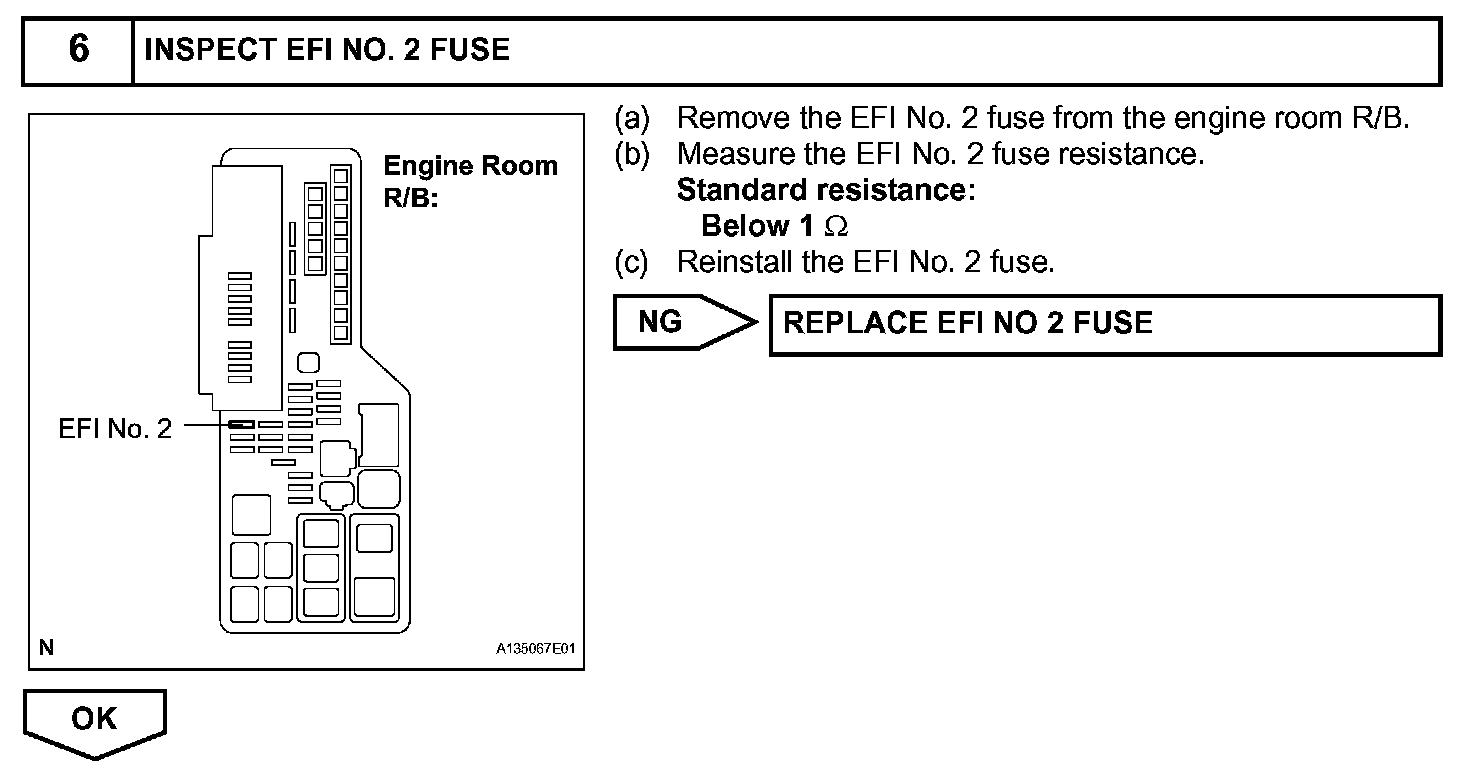 The ECM MREL output signal causes a current to flow to the coil, closing the contacts of the EFI MAIN relay and supplying power to terminal +B of the ECM.