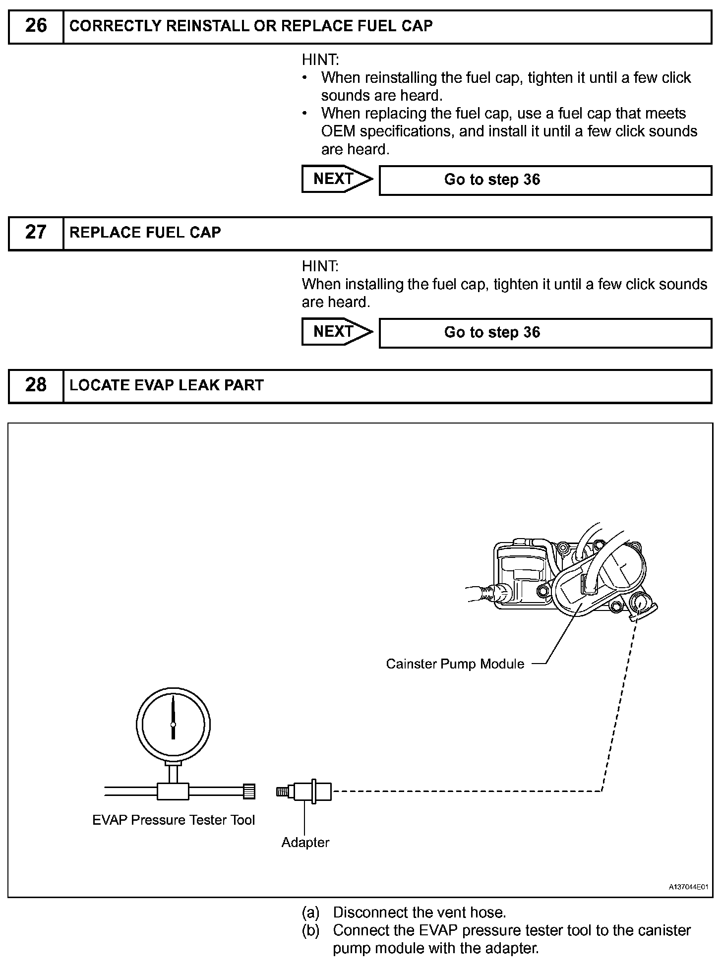 HINT: After a repair, check Monitor Status by performing the Key-Off Monitor Confirmation and Purge Flow Monitor Confirmation as described.