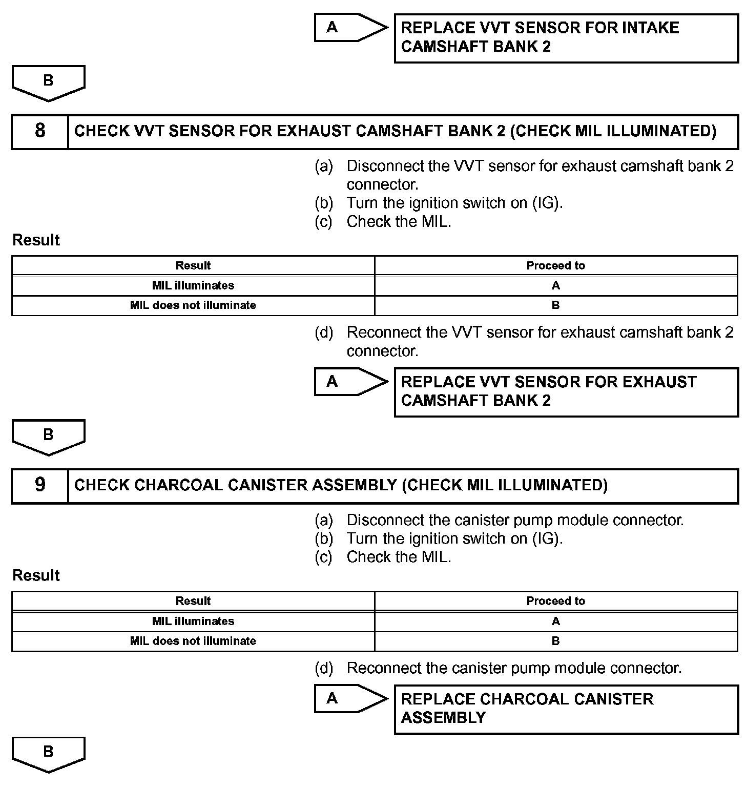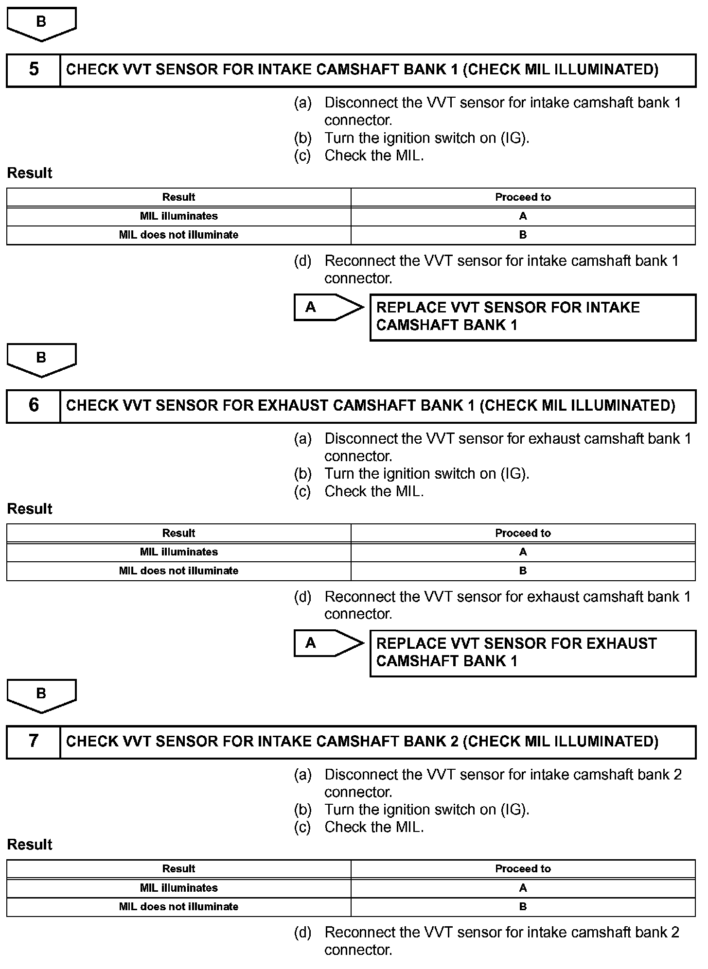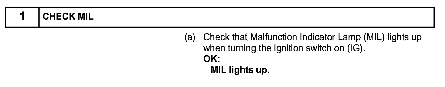 HINT: Under normal conditions, the MIL is illuminated for several seconds when the ignition switch is first turned on (IG). The MIL goes off when the engine is started.