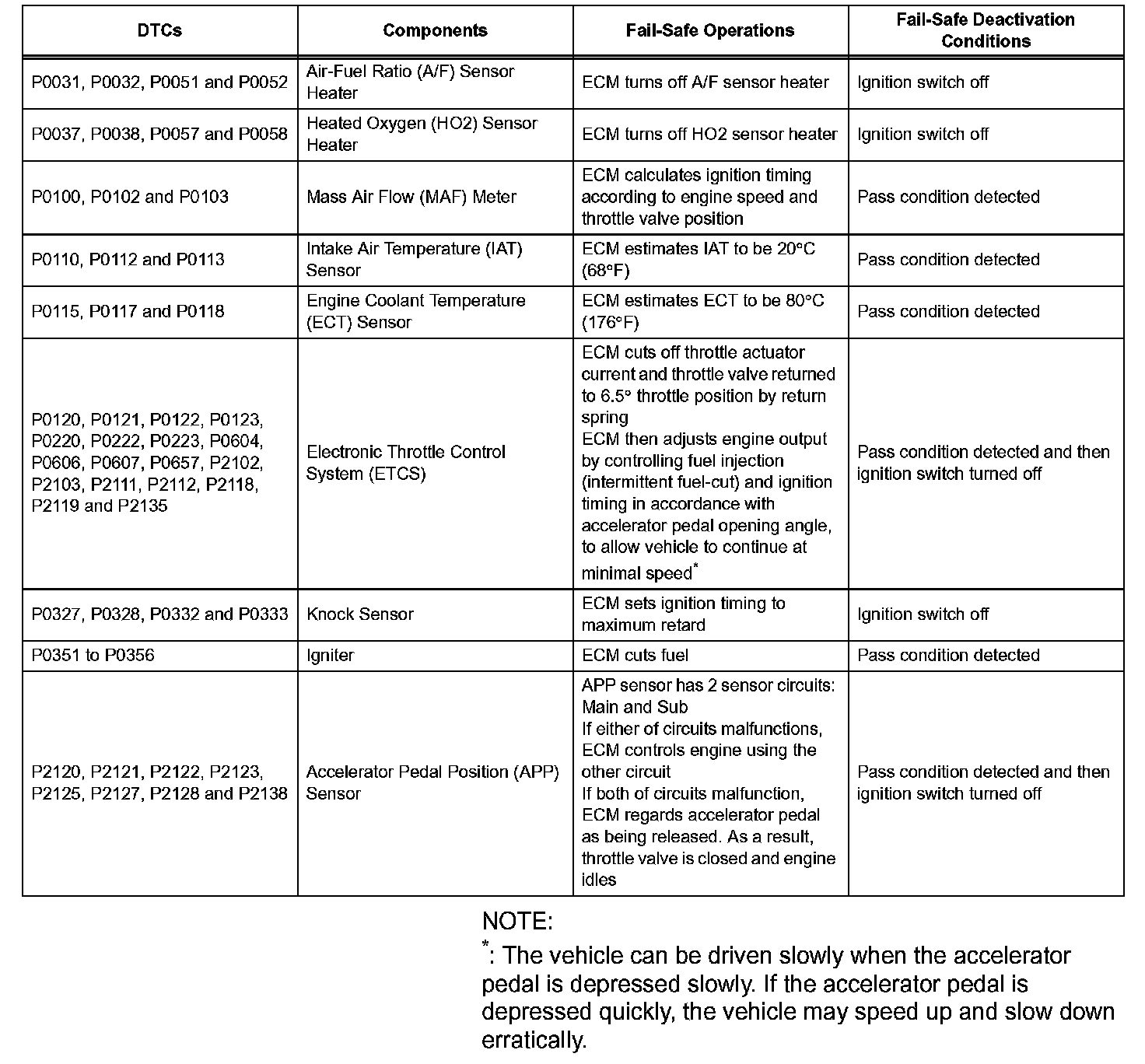 If any of the given DTCs are set, the ECM enters fail-safe mode to allow the vehicle to be driven temporarily.