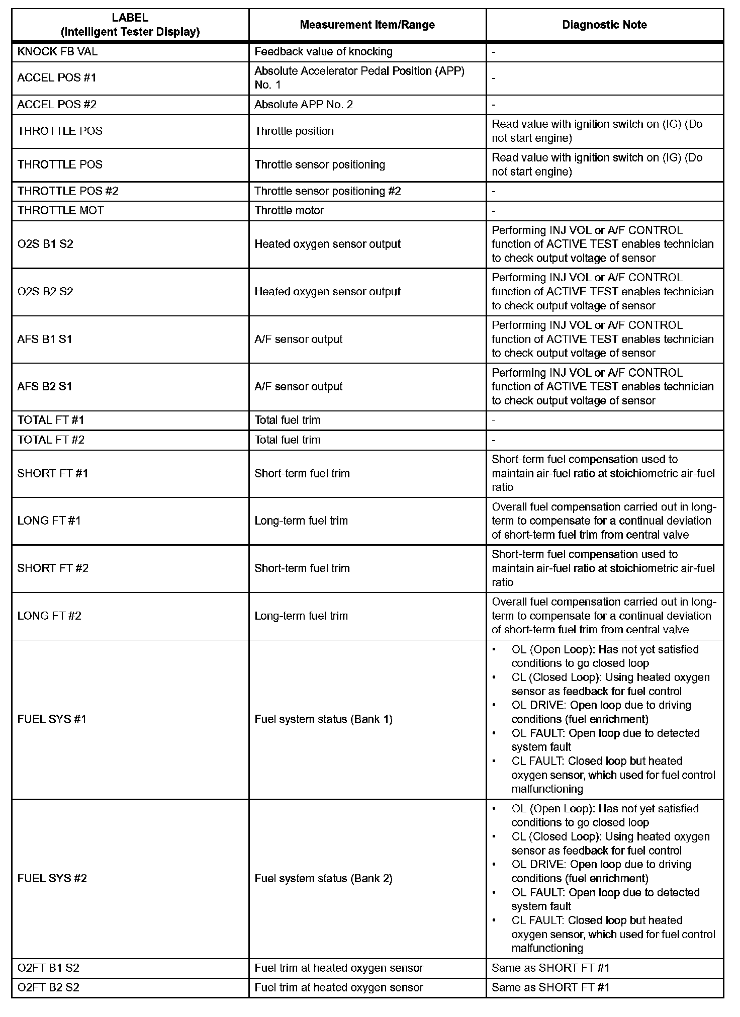 The ECM records vehicle and driving condition information as freeze frame data the moment a DTC is stored. When troubleshooting, freeze frame data can be helpful in determining whether the vehicle was running or stopped, whether the engine was warmed up or not, whether the air/fuel ratio was lean or rich, as well as other data recorded at the time of a malfunction.