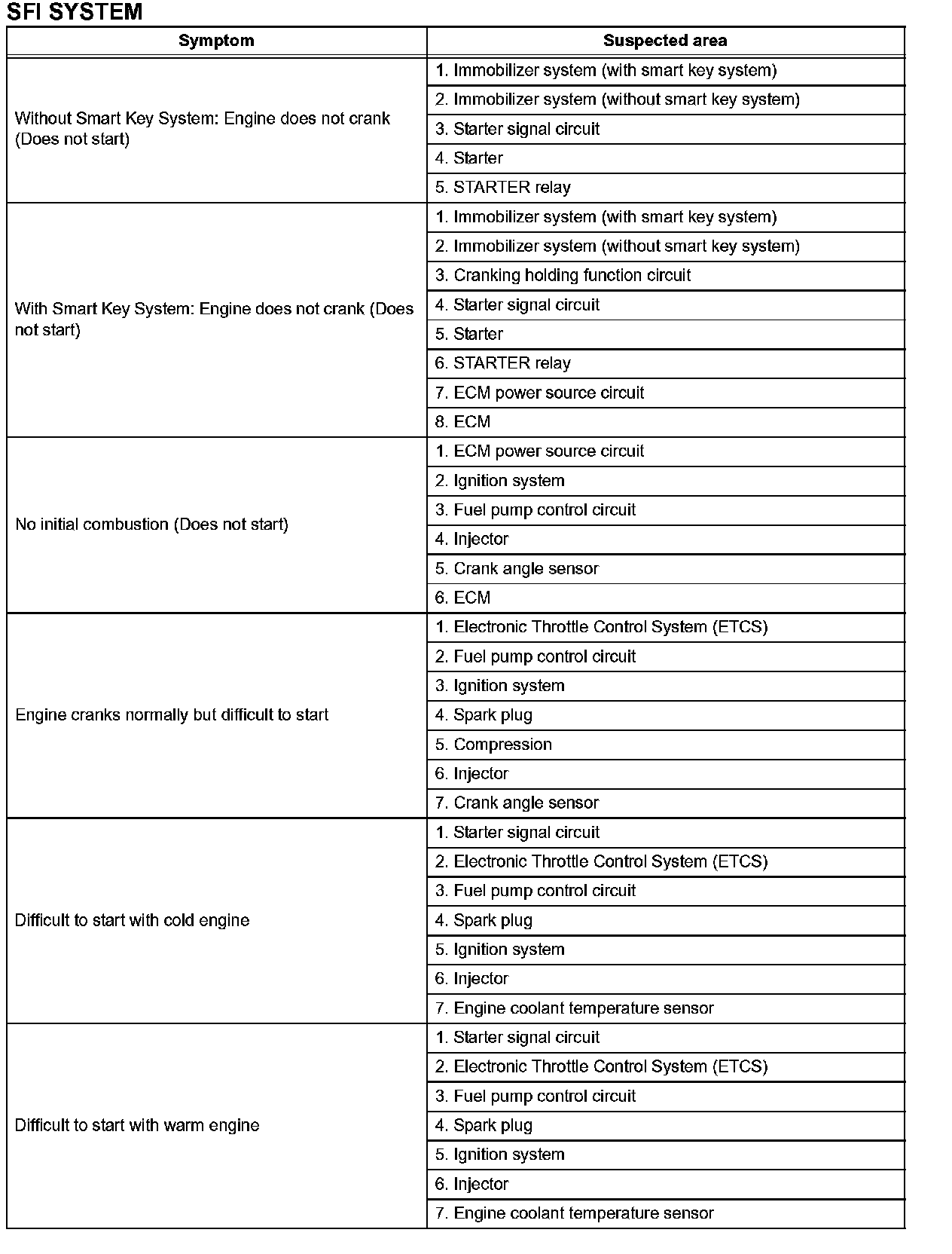 Problem Symptoms Table-SFI System (Part 2):