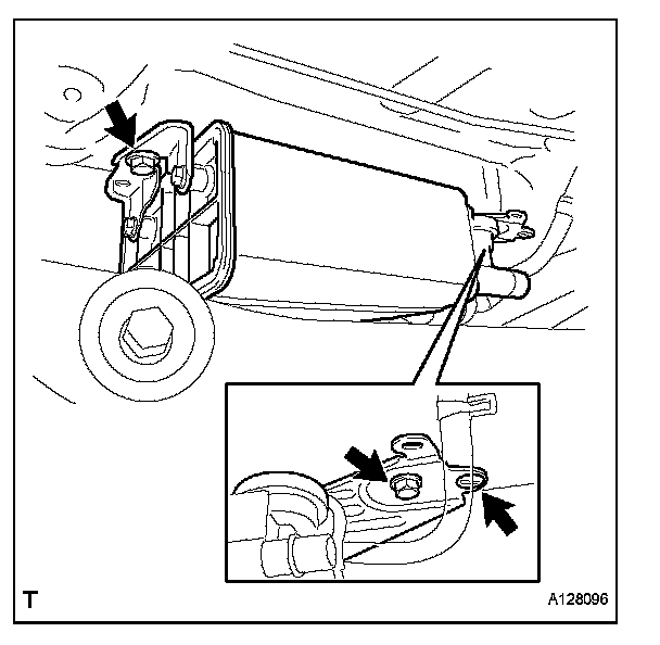 a. Install the 2 bolts, clip and charcoal canister.