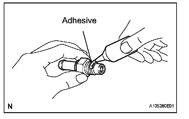 1. Apply adhesive to 2 or 3 threads.