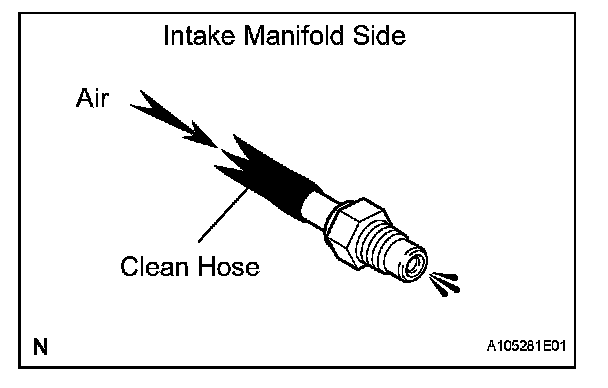 2. Blow air into the intake manifold side, and check that air passes through with difficulty.