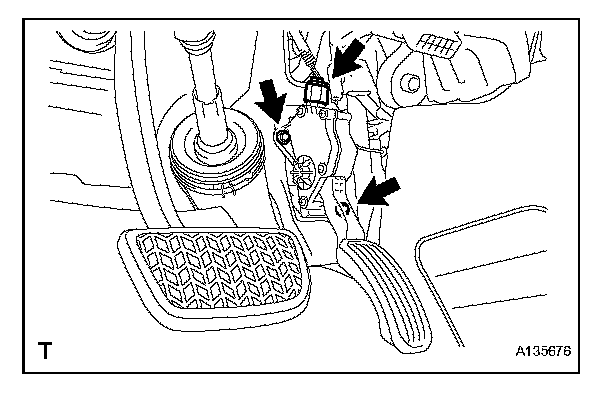 b. Remove the 2 bolts and the accelerator pedal assembly.
