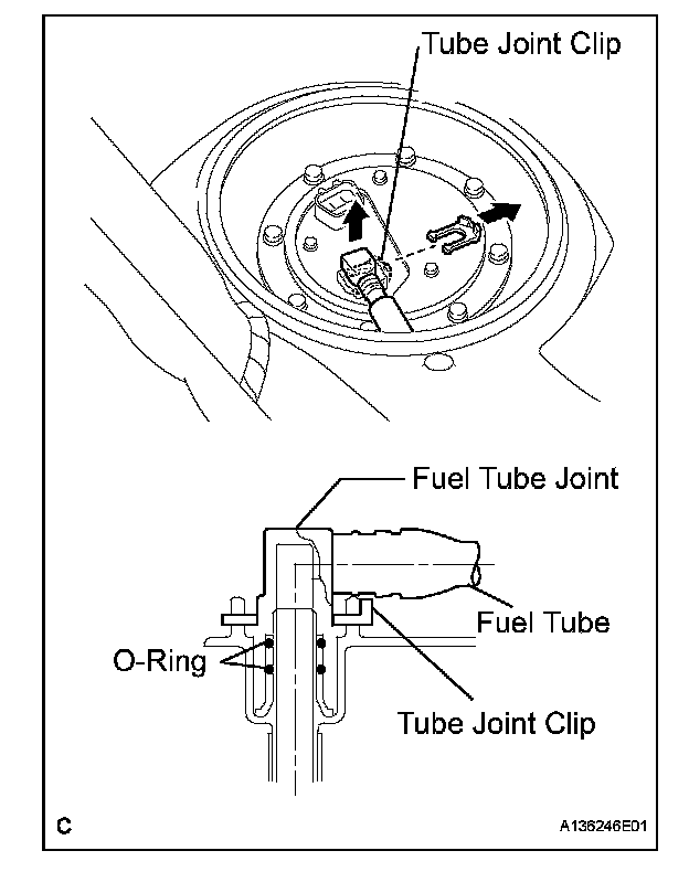 a. Remove the tube joint clip, and pull out the fuel pump tube.