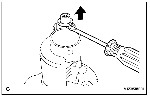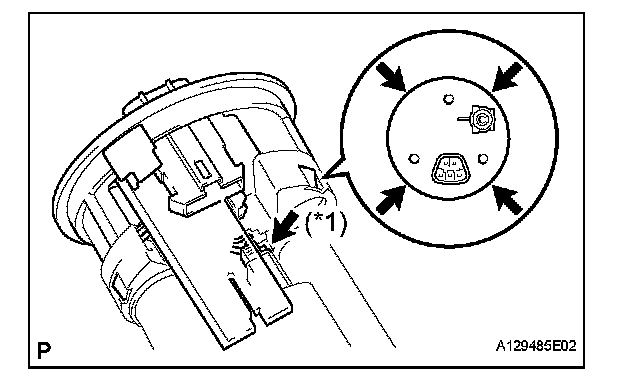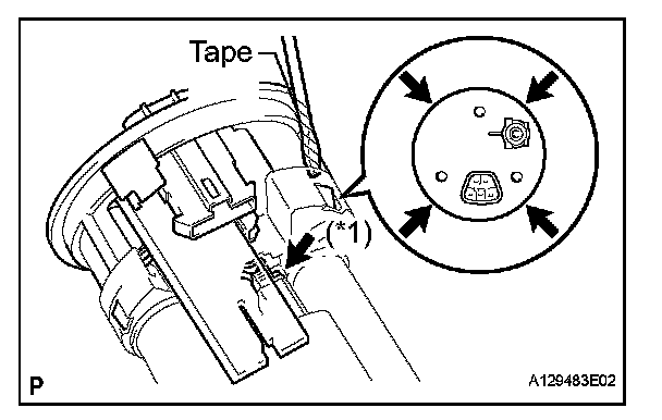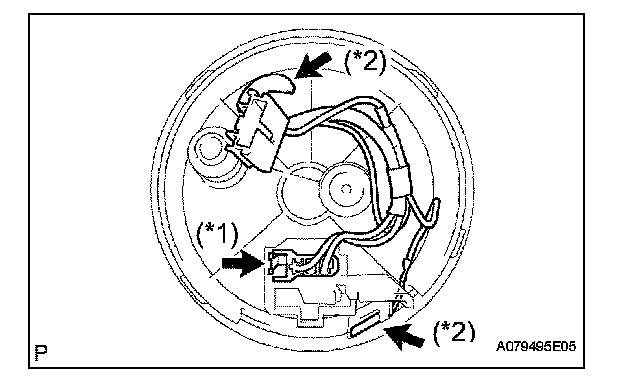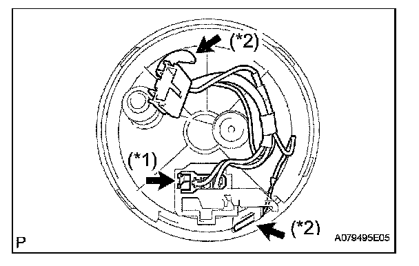 b. Using a screwdriver, pry out the fuel pump harness (*2).