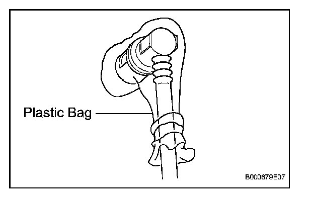 6. Do not damage the disconnected pipe and connector, and prevent entry of foreign objects by covering them with a plastic bag.