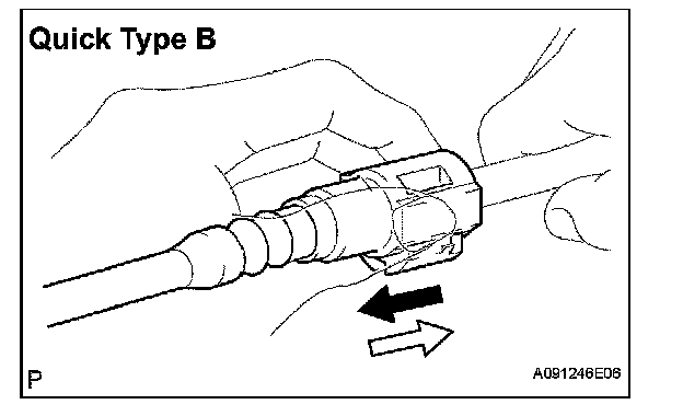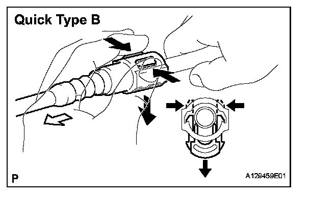 f. Observe the following precautions when disconnecting the fuel tube connector (Quick type B):