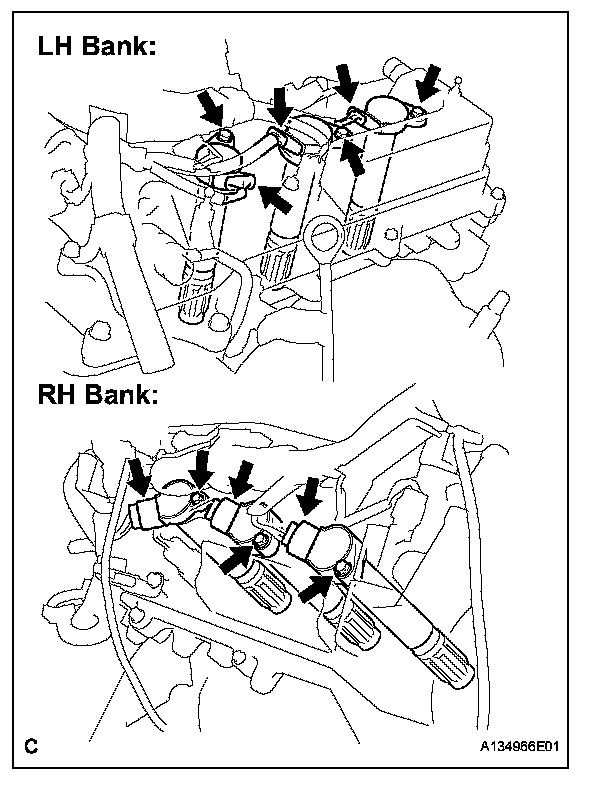 a. Install the 6 ignition coils with the 6 bolts.
