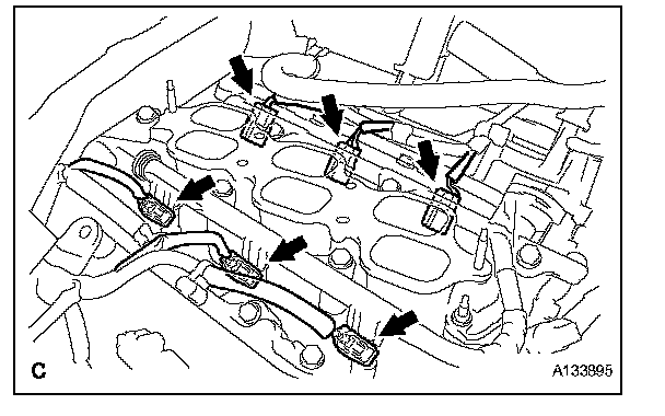 5. Disconnect the 6 fuel injector connectors.