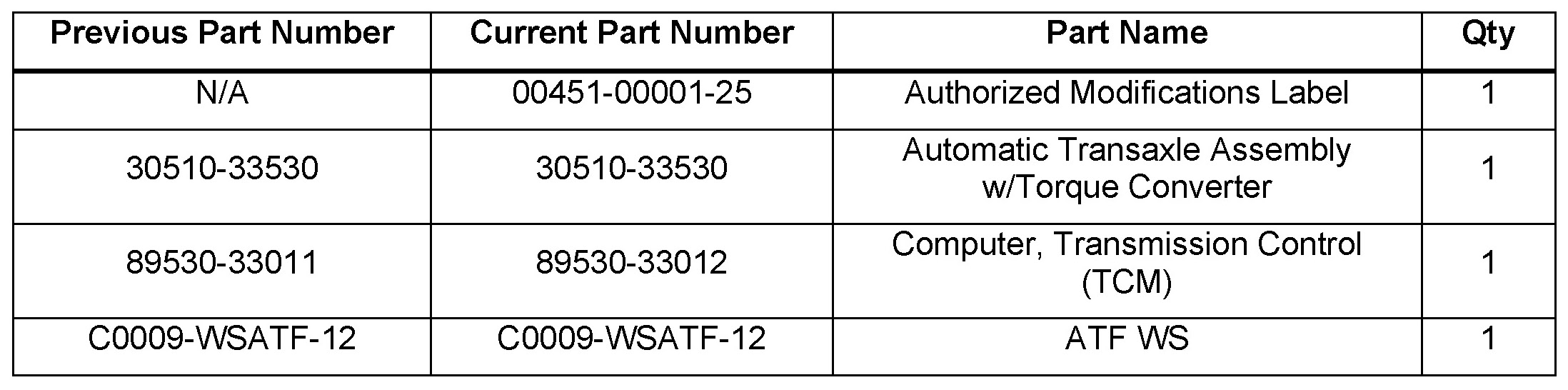 - TCM part number: [Refer to the Parts Information section for the CURRENT PART NUMBER]