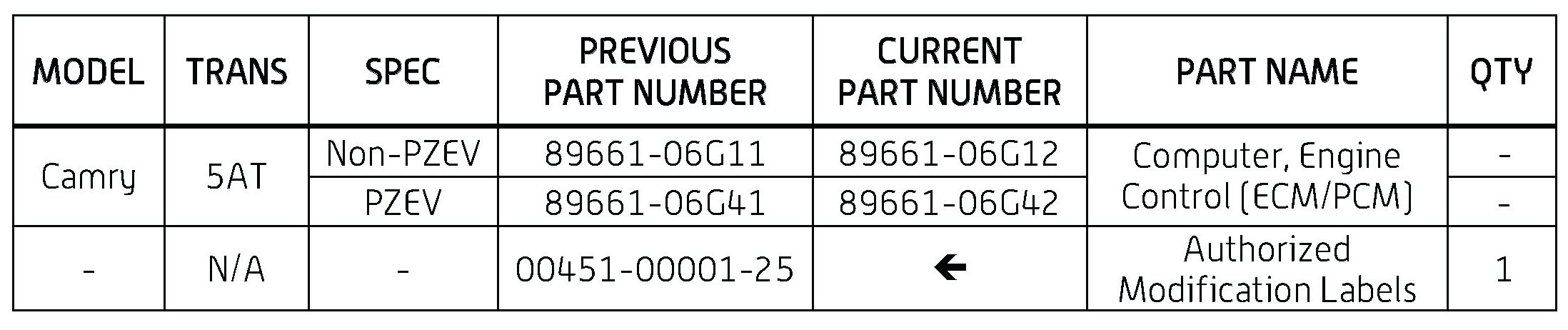 - ECM part number [Refer to the Parts Information section for the CURRENT PART NUMBER]