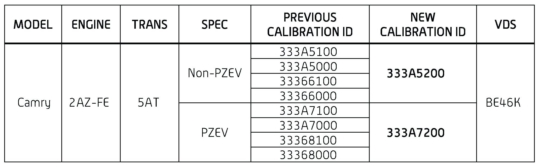 - Calibration ID(s) [Refer to the Calibration Identification Chart for the NEW CALIBRATION ID]