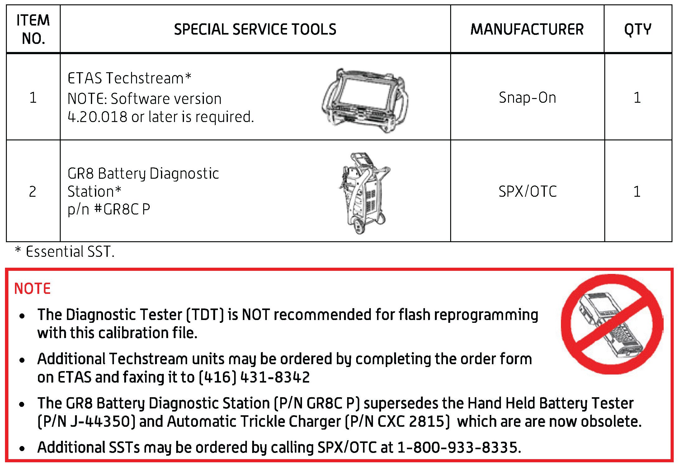 - For details on how to use the GR8 Battery Diagnostic Station, refer to the GR8 Battery Diagnostic Station Instruction Manual located on ETAS/TIS library > Tools > tools and equipment > GR8 Battery Diagnostic Station Instruction Manual.