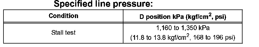 (11) Firmly depress the brake pedal, shift to the D position, depress the accelerator pedal all the way down, and check the line pressure while the stall test is performed.