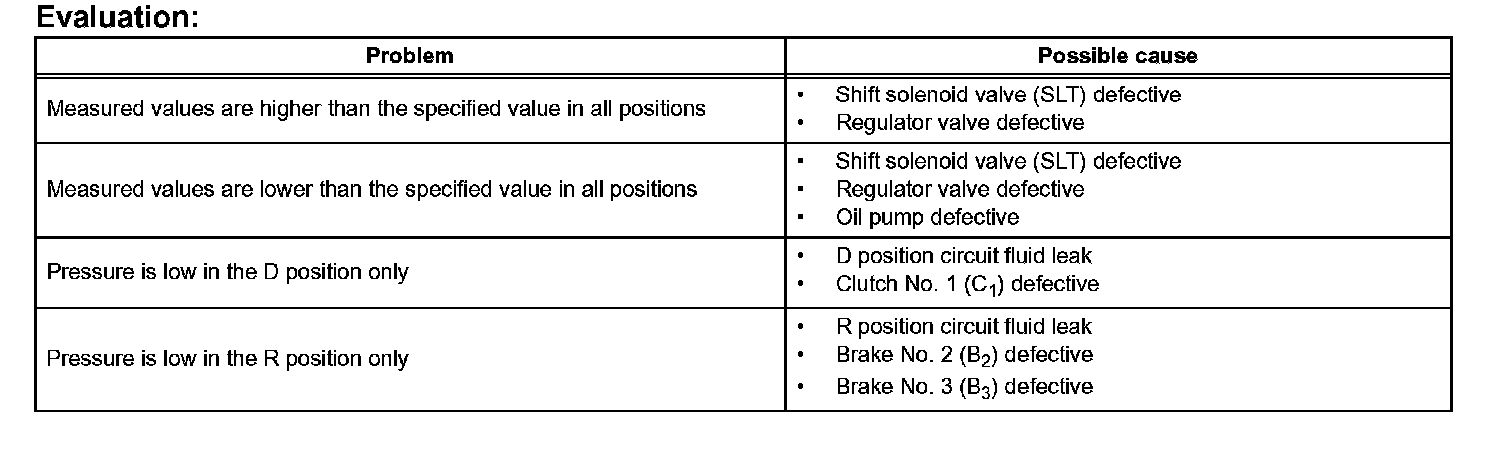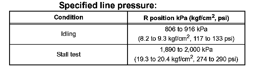 ^ Perform the test at the normal operating ATF (Automatic Transmission Fluid) temperature: 50 to 80°C (122 to 176°F).