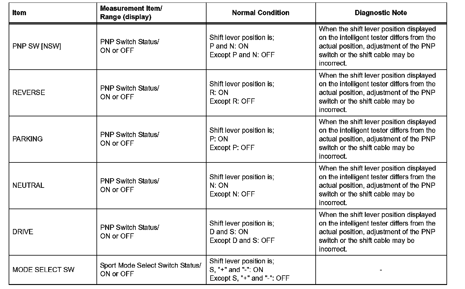 The park/neutral position switch detects the shift lever position and sends signals to the TCM.