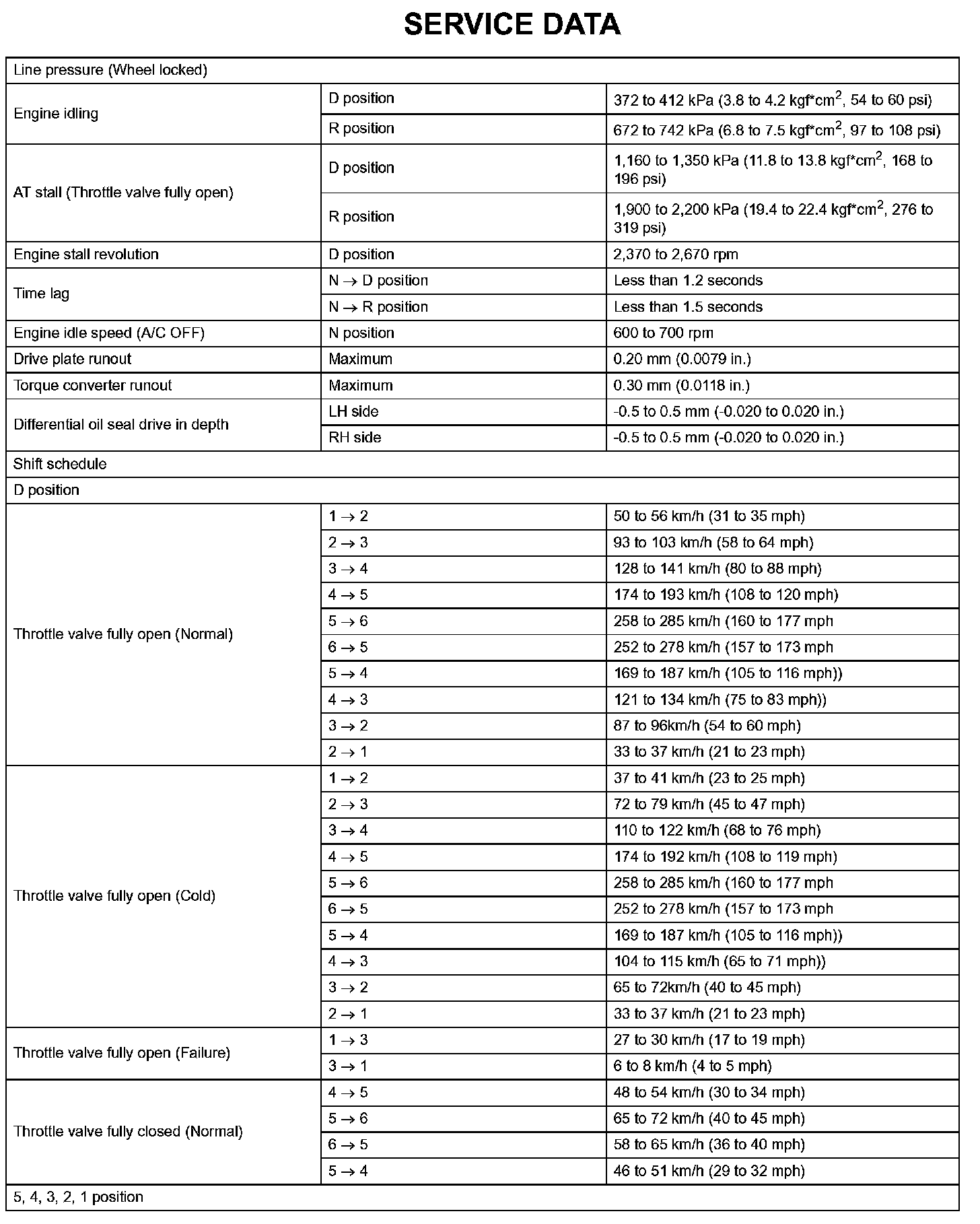 Automatic Transaxle - Service Data (Part 5):