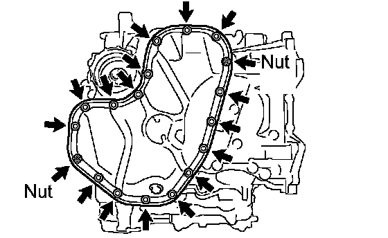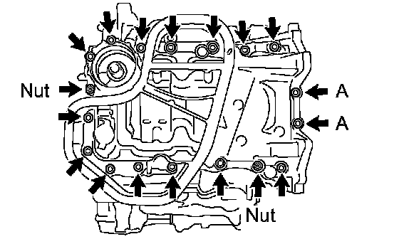 Oil PanInstall the oil pan with the 16 bolts and 2 nuts.