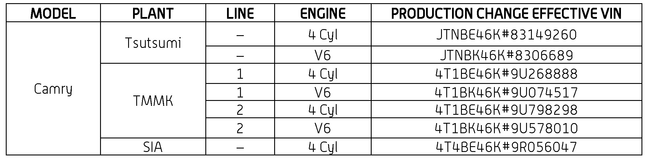This TSB applies to vehicles produced BEFORE the Production Change Effective VINs shown.