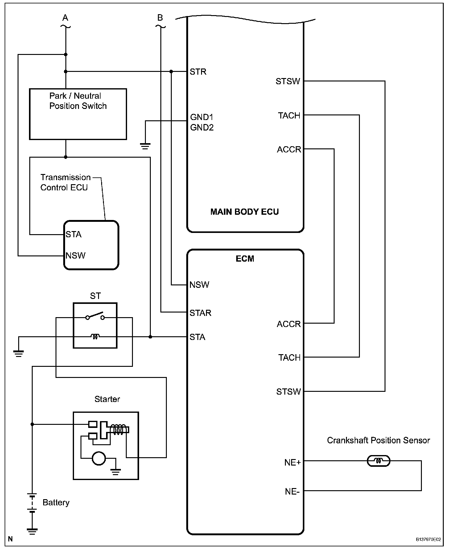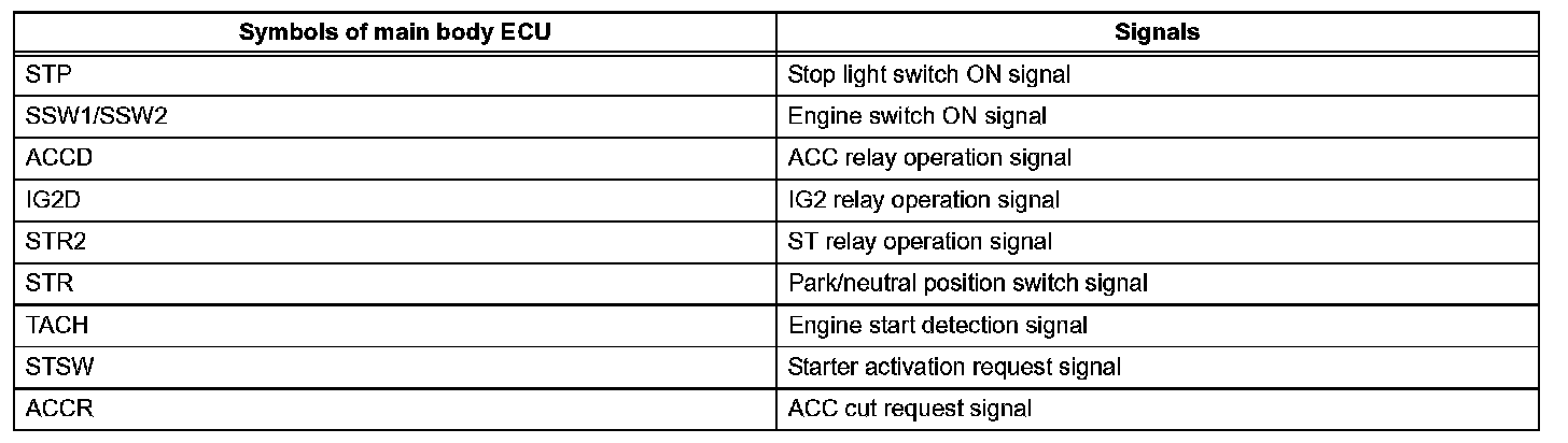 f. The main body ECU sends an engine start request signal to the ECM.