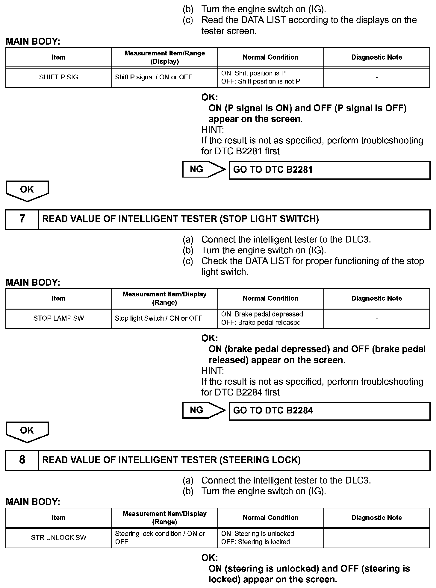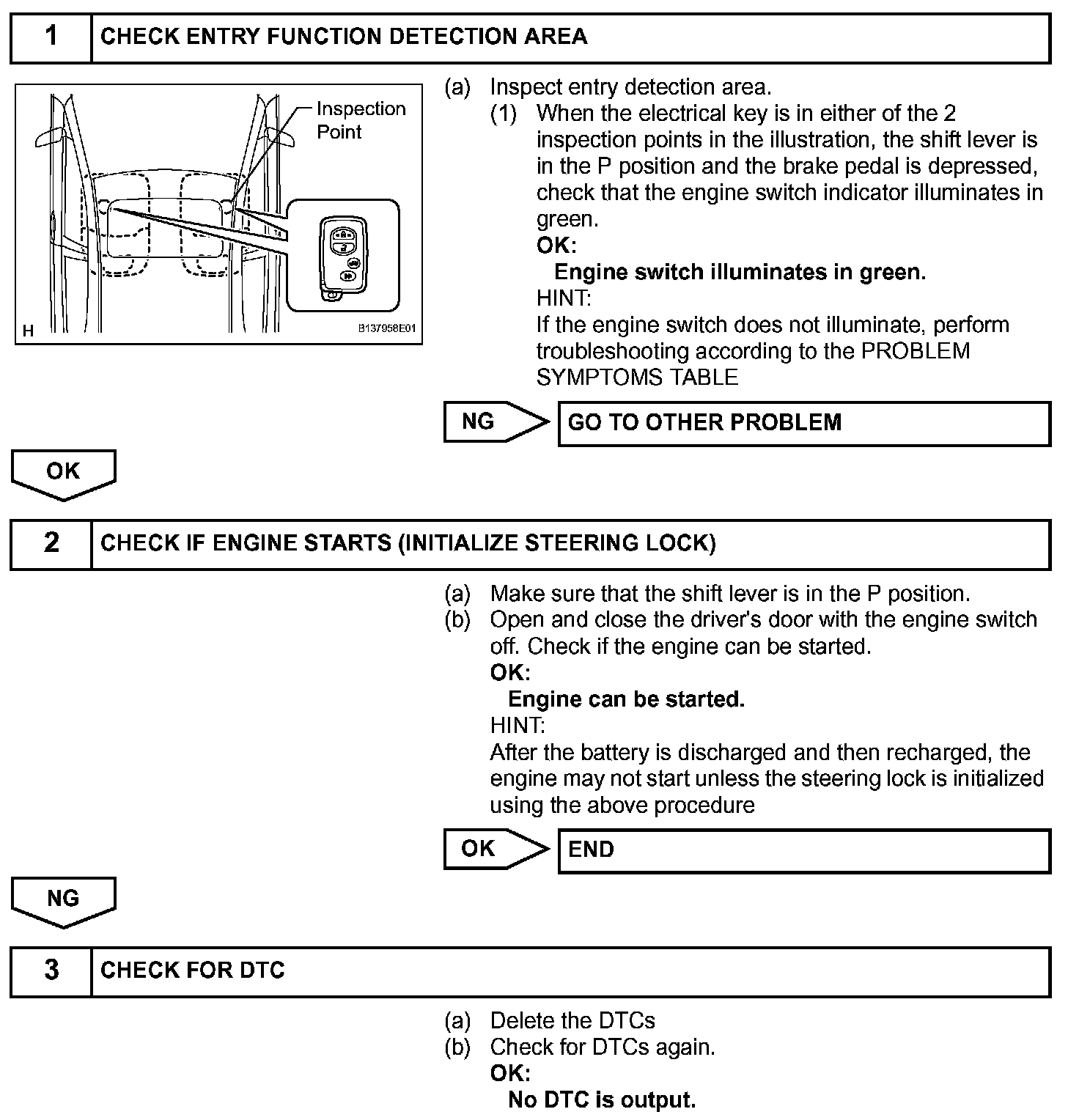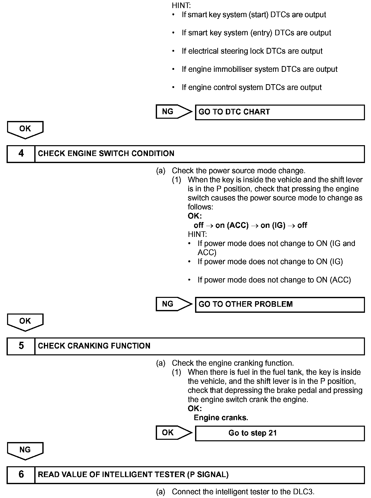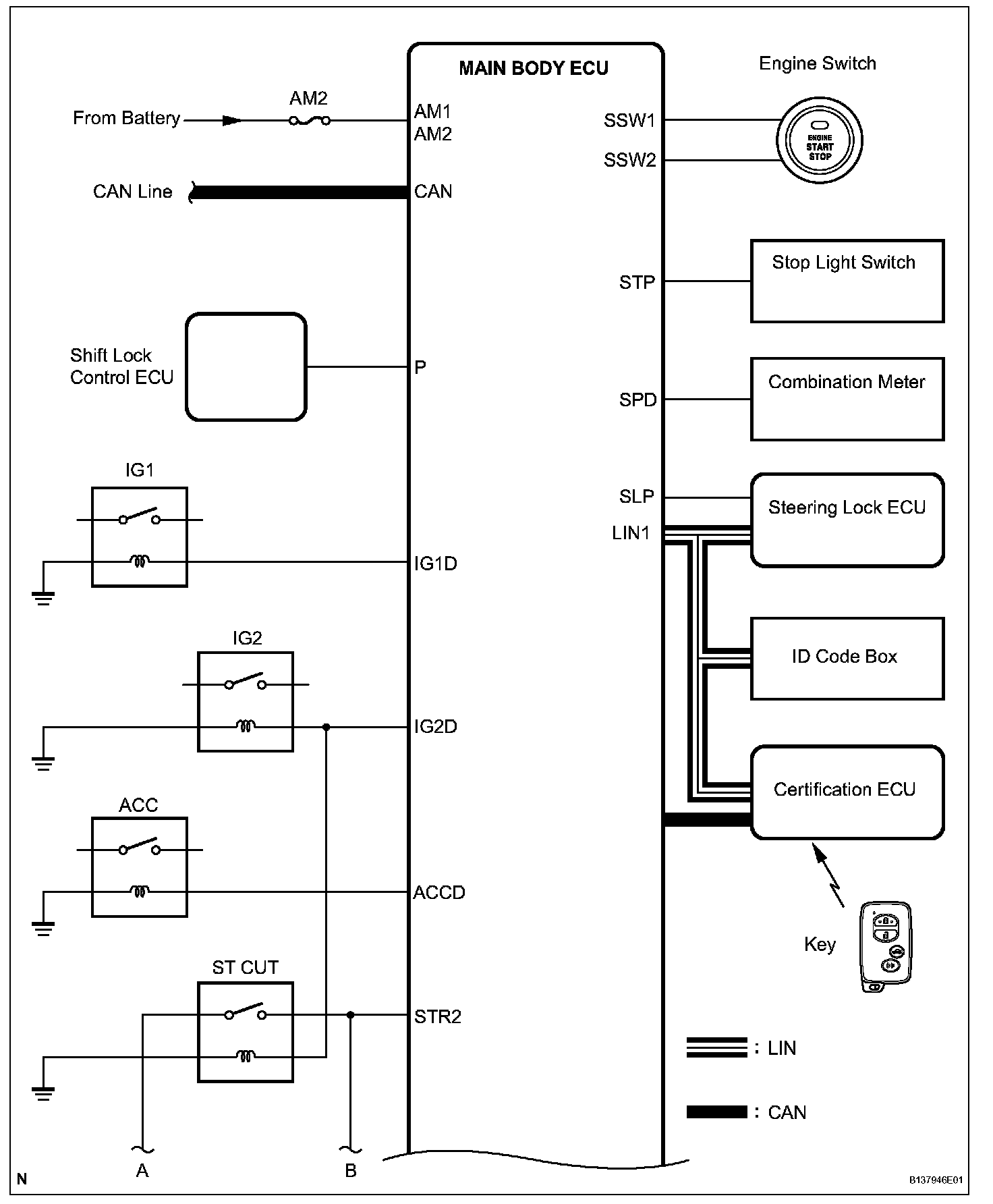 a. If the engine switch is pressed with the shift lever in the P or N position and the brake pedal depressed, the main body ECU determines that it is an engine start request.