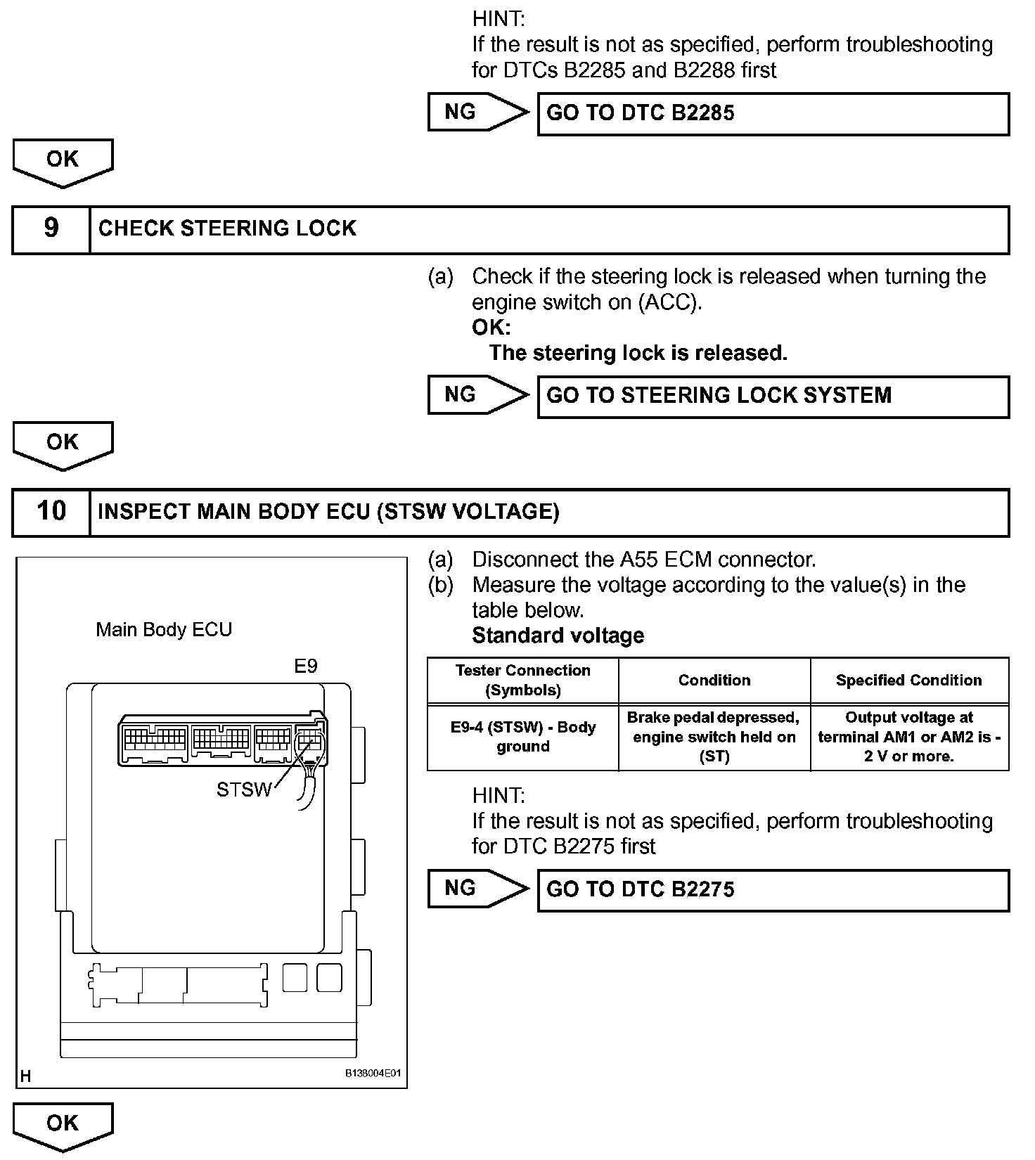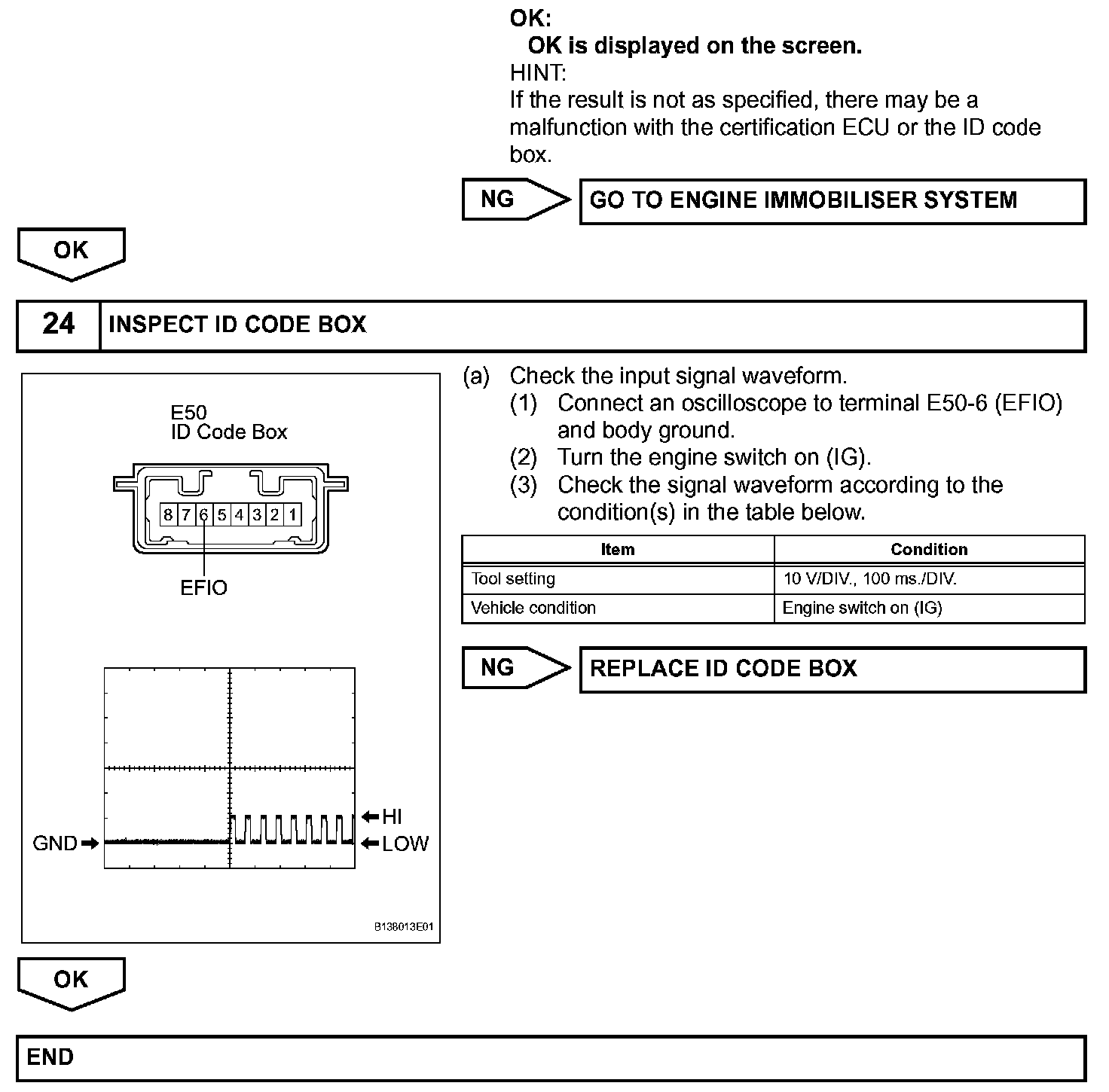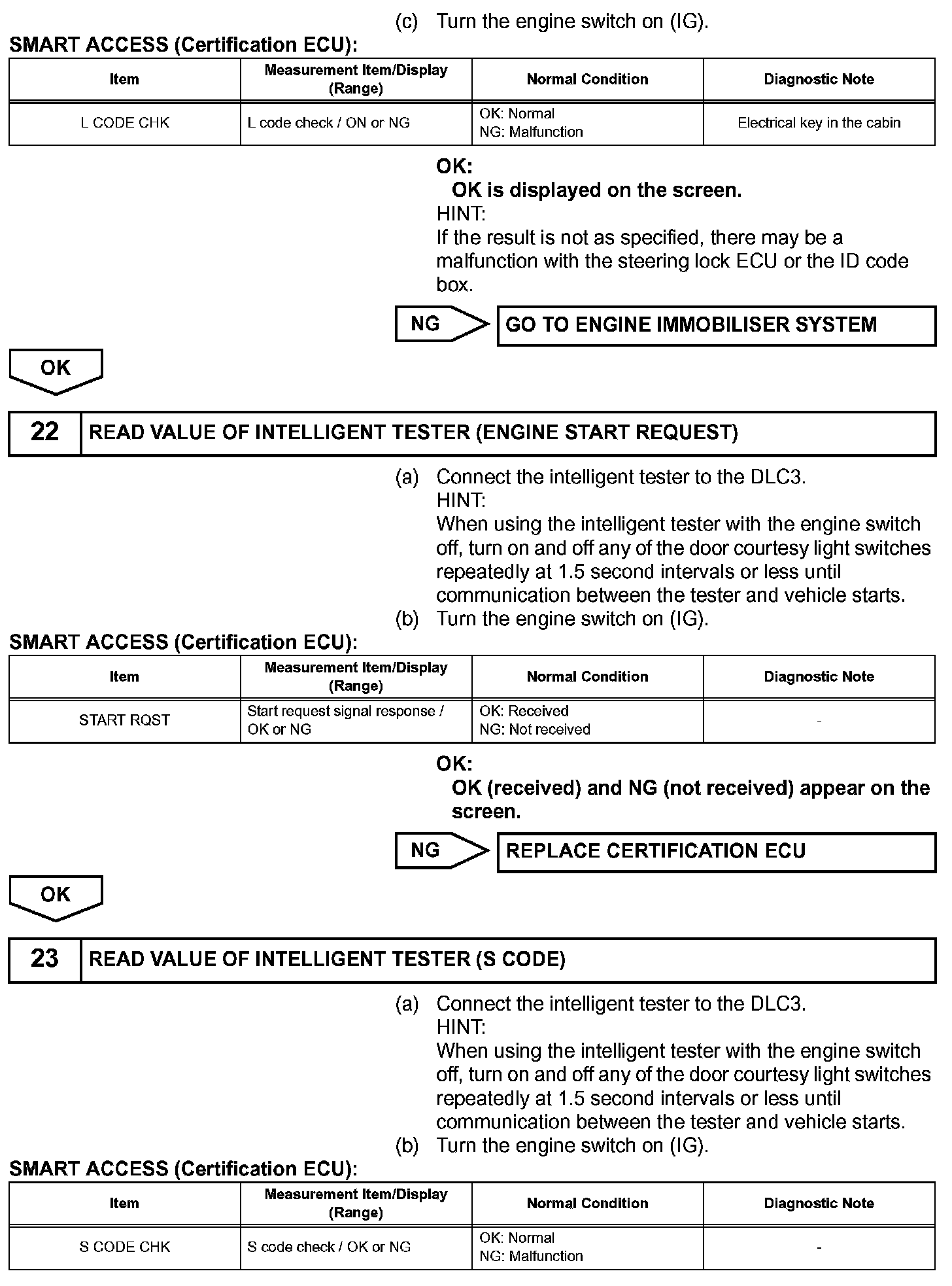 e. The certification ECU outputs a steering UNLOCK signal. The signal is sent to the main body ECU via the steering lock ECU.