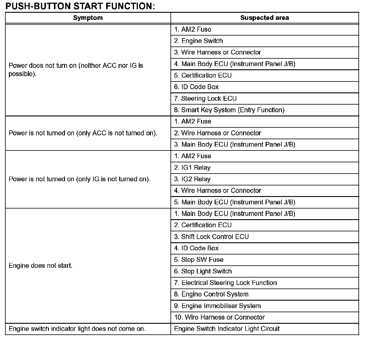 PROBLEM SYMPTOMS TABLEProblem Symptoms Table-Push-Button Start Function: